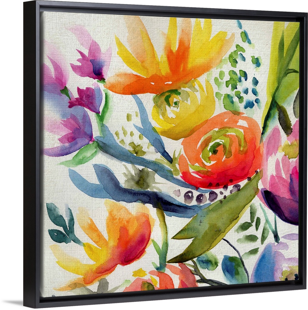 <p>Vibrant Summer flowers painted on a white square background.</p>