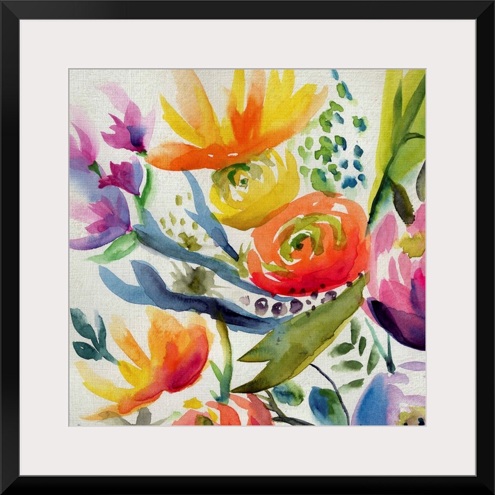 <p>Vibrant Summer flowers painted on a white square background.</p>