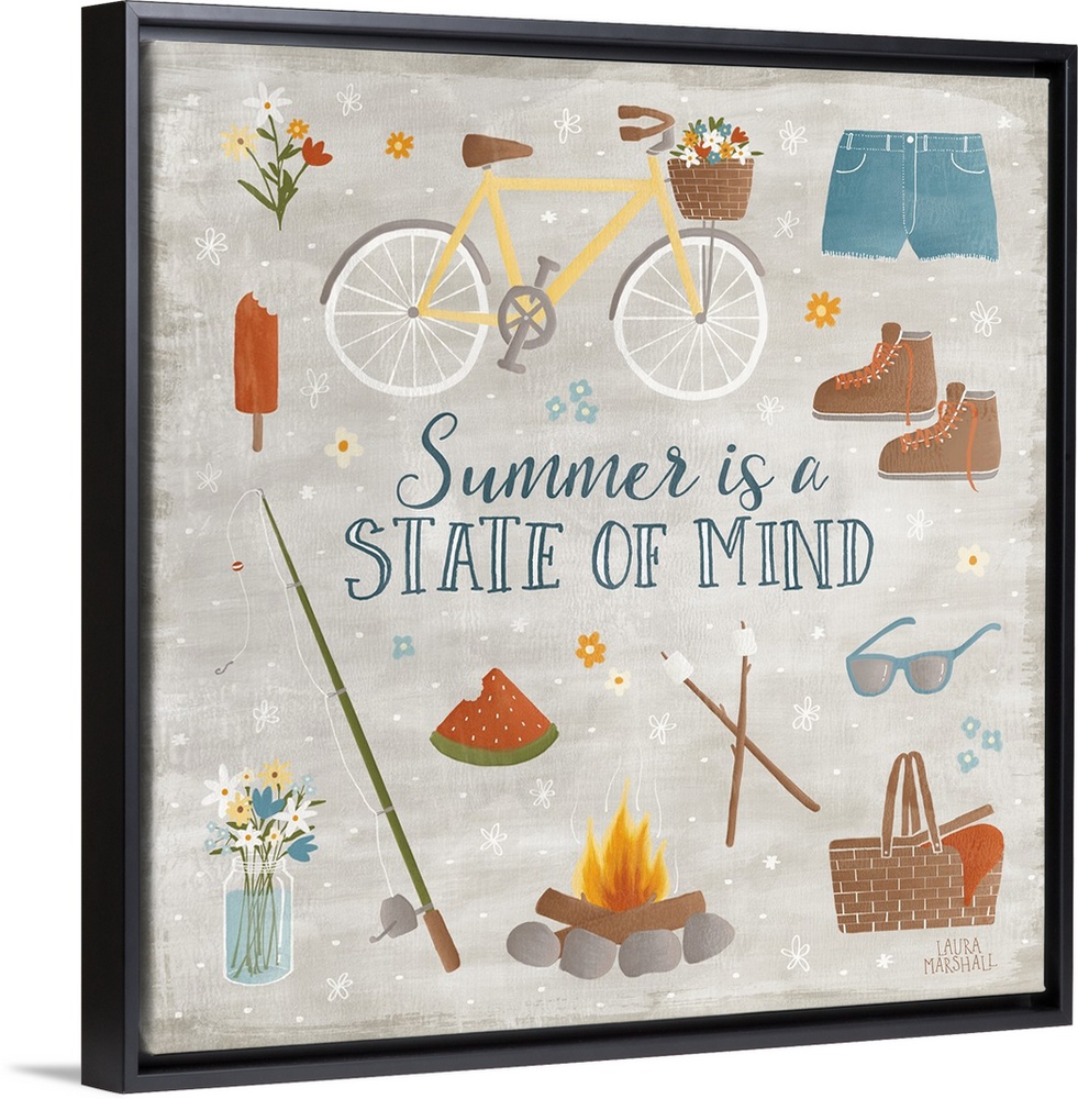 <p>"Summer is a State of Mind" square Summer decor with Summer activity illustrations.</p>