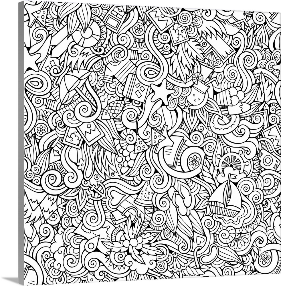 <p>An assortment of summer and beach-themed objects, including boats, waves, and palm trees. Perfect for Coloring Canvas.</p>