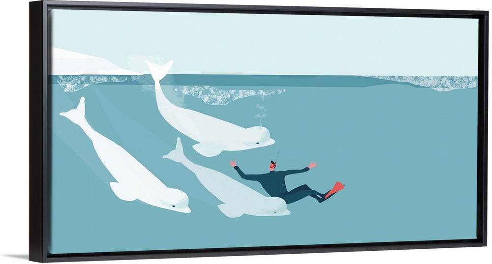 Art Coastal Blue Wall Art Contemporary Art Graphic Art Annelien Smet Sports Watersports Diving Wildlife Marine Life Dolphin
