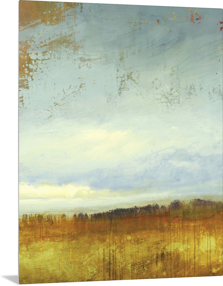 <p>A contemporary abstract painting muted tones of blue and brown.</p>