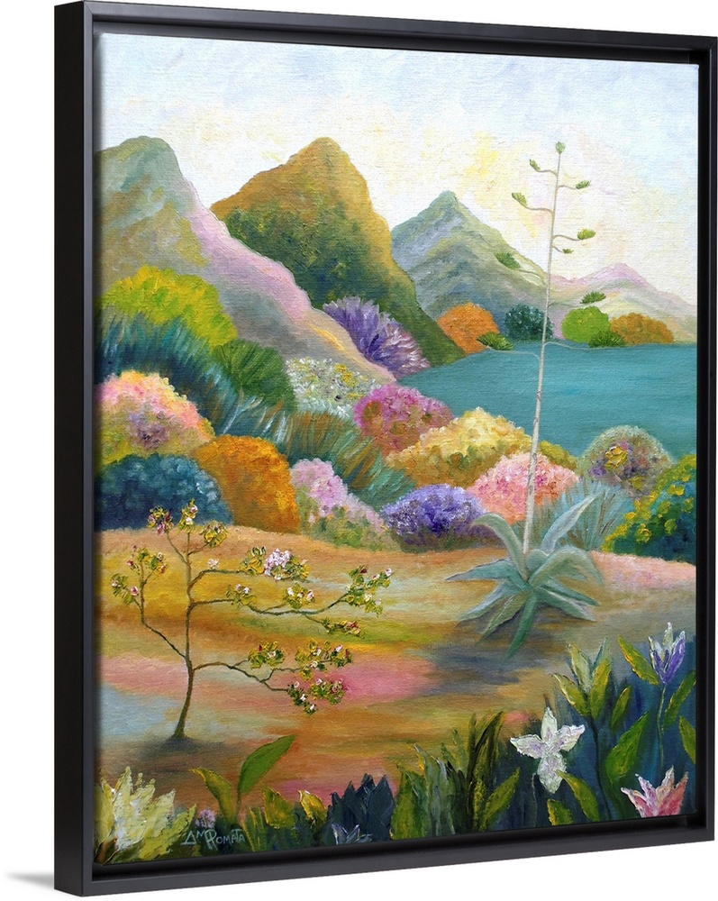 Art Contemporary Art Landscapes Lake Mountains Multicolor Wall Art Painting Angeles M. Pomata