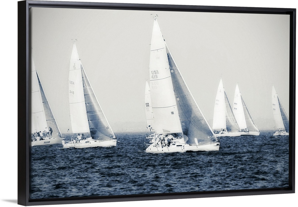 <p>Big canvas photo of six sailboats racing on the ocean.</p>