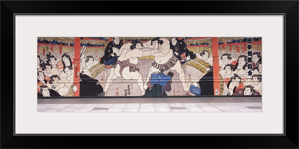 <p>Mural on outside of Ryogoku Kokugikan, the sumo arena in Tokyo, Japan</p>