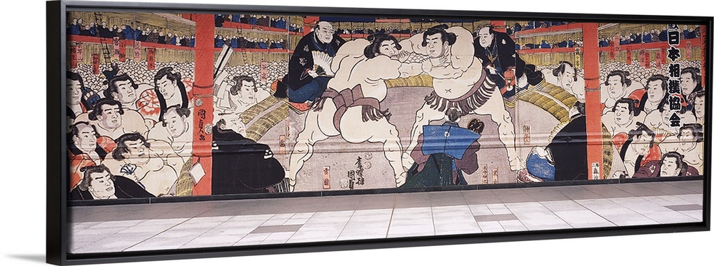 <p>Mural on outside of Ryogoku Kokugikan, the sumo arena in Tokyo, Japan</p>