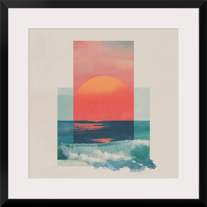 Art Coastal Blue Wall Art Decorative Art Geometric Art Graphic Art Seascapes Skyscapes Sunset Orange Wall Art