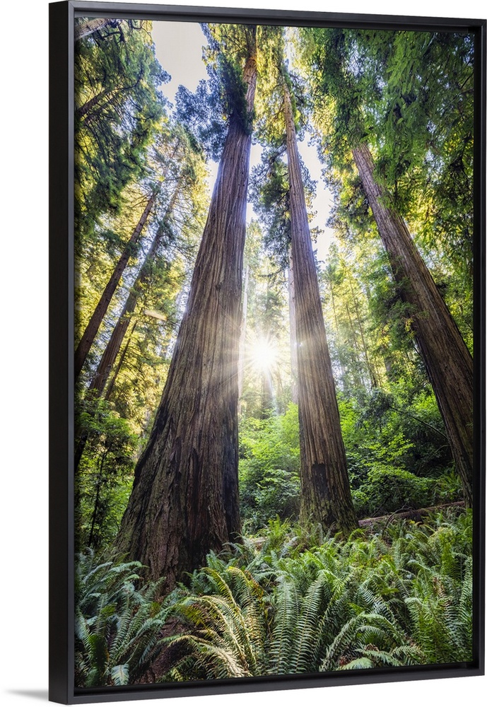 <p>Sun rays at sunrise in Jedediah Smith Redwood Forest</p>