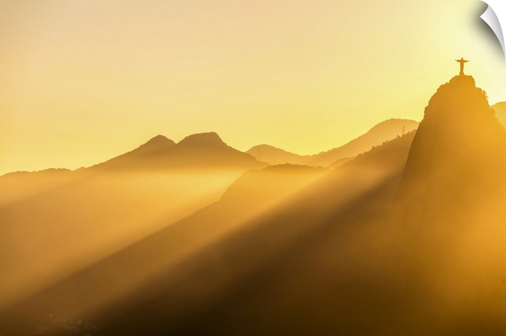 <p>Sun rays over hills and Christ the Redeemer statue of Rio De Janeiro; Rio de Janeiro, Rio de Janeiro, Brazil.</p>