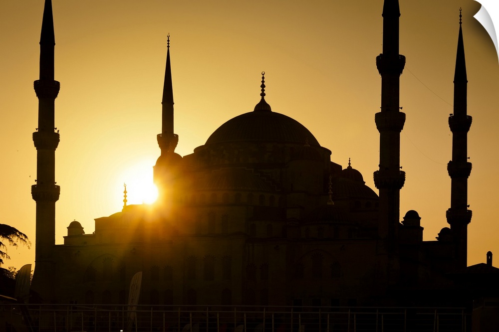 <p>Sun Setting Behind Blue Mosque, Istanbul, Turkey</p>