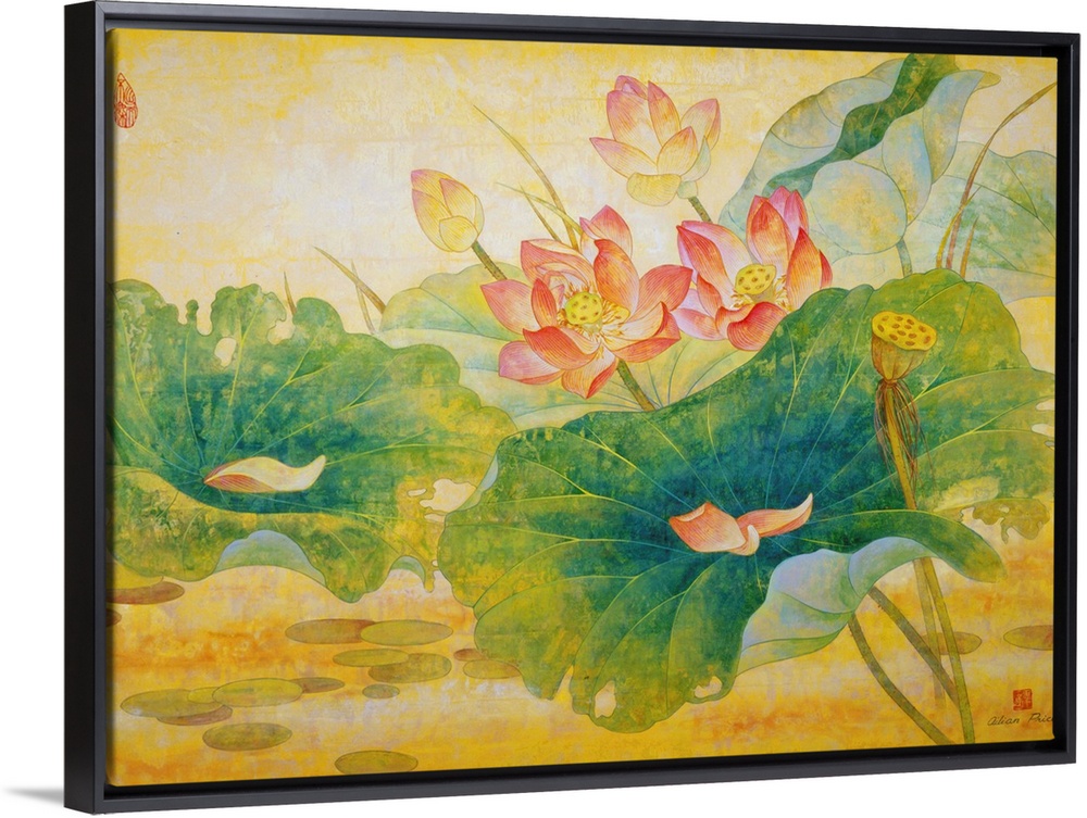 Art Asian Art Plants and Flowers Contemporary Art Plants and Flowers Florals Water Lily Green Wall Art Painting Ailian Price