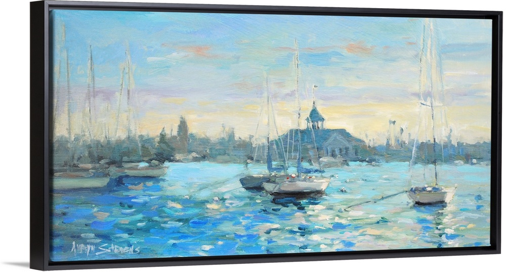 Art Coastal Blue Wall Art Contemporary Art Landscapes Harbor Seascapes Painting Allayn Stevens Transportation Boat