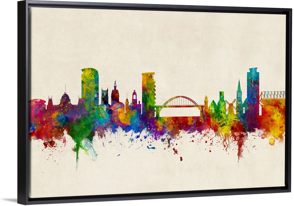 <p>Watercolor art print of the skyline of Sunderland, England, United Kingdom</p>