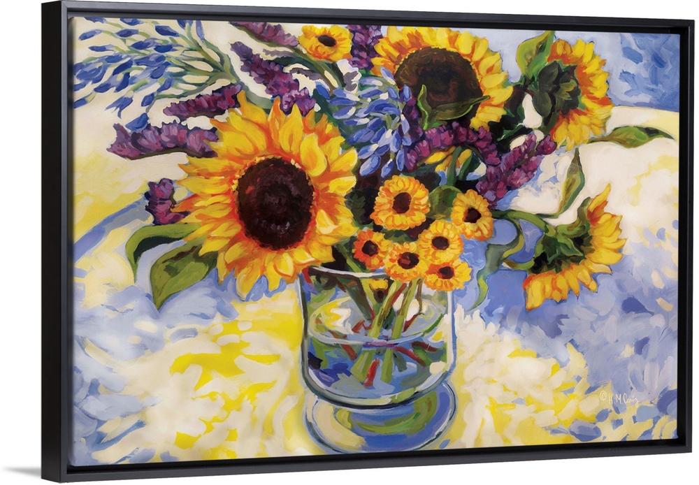 <p>Contemporary artwork of a bouquet of sunflowers in a vase.</p>