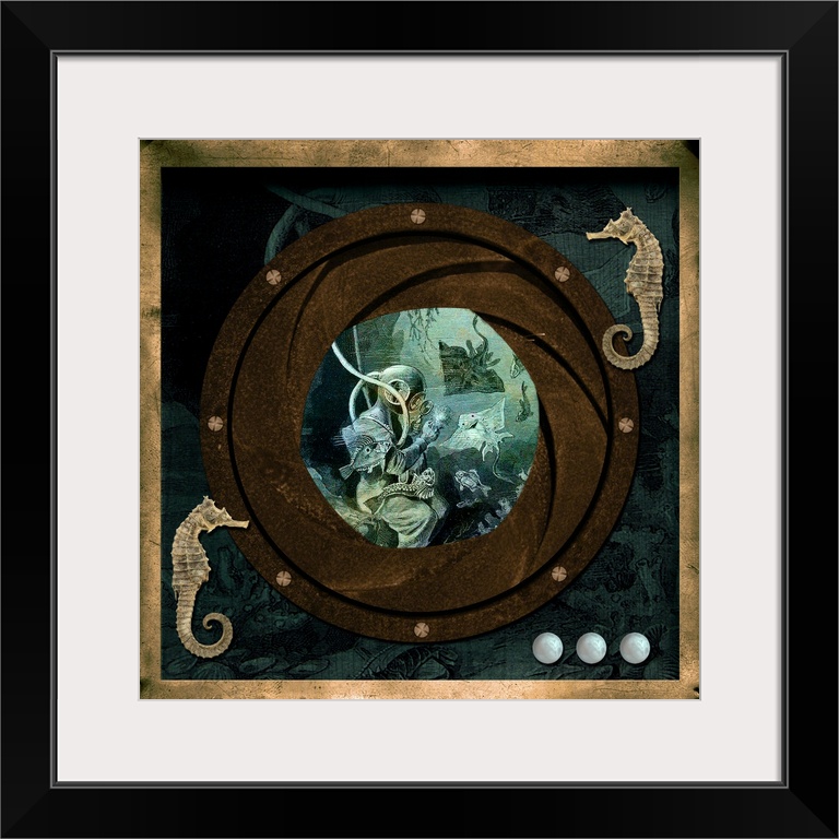<p>A vintage deep sea diver examines the wonders of the ocean floor.</p>