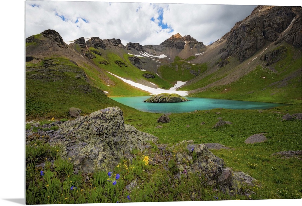 <p>Sunlight Illuminates Island Lake in Colorado's Ice Lake Basin, Ice Lake Basin</p>