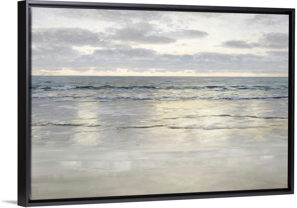 <p>This contemporary artwork features a calm ocean view with soothing colors and introspective lighting.</p>