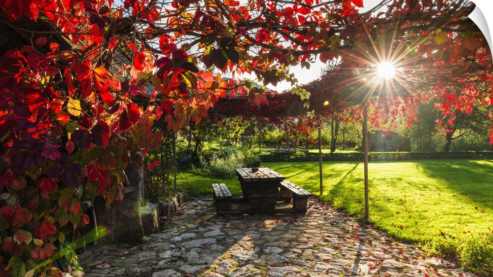 <p>Sunlight through autumn grape vines, Korana Village, Plitvice Lakes National Park, Croatia.</p>