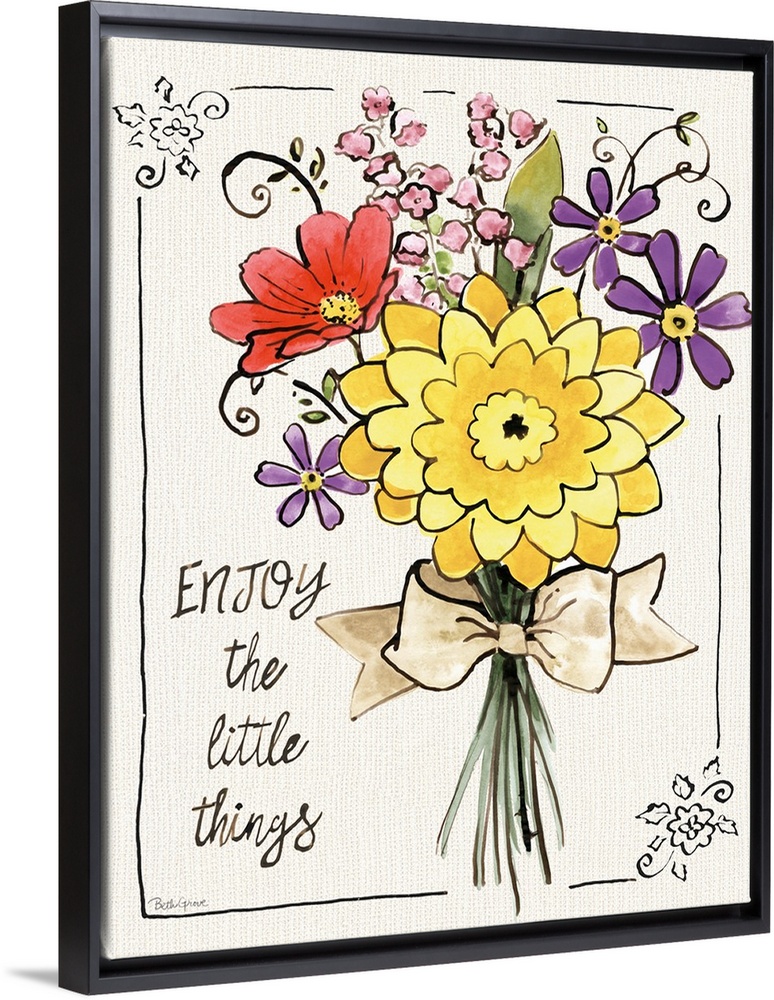 <p>"Enjoy The Little Things" written on the side of a colorful bouquet of flowers.</p>
