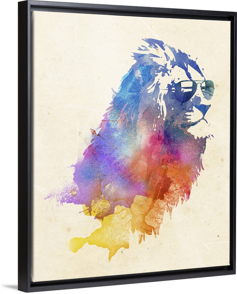 <p>Contemporary artwork of a watercolor lion wearing sunglasses.</p>