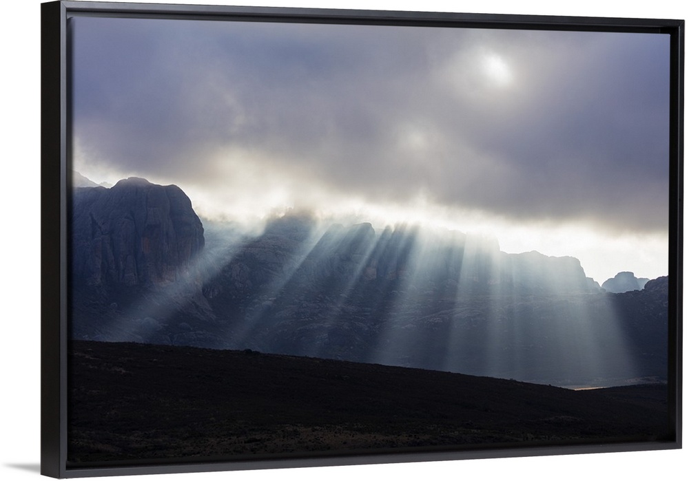 <p>Sunrays breaking through cloud, Andringitra National Park, Ambalavao, central area, Madagascar, Africa</p>