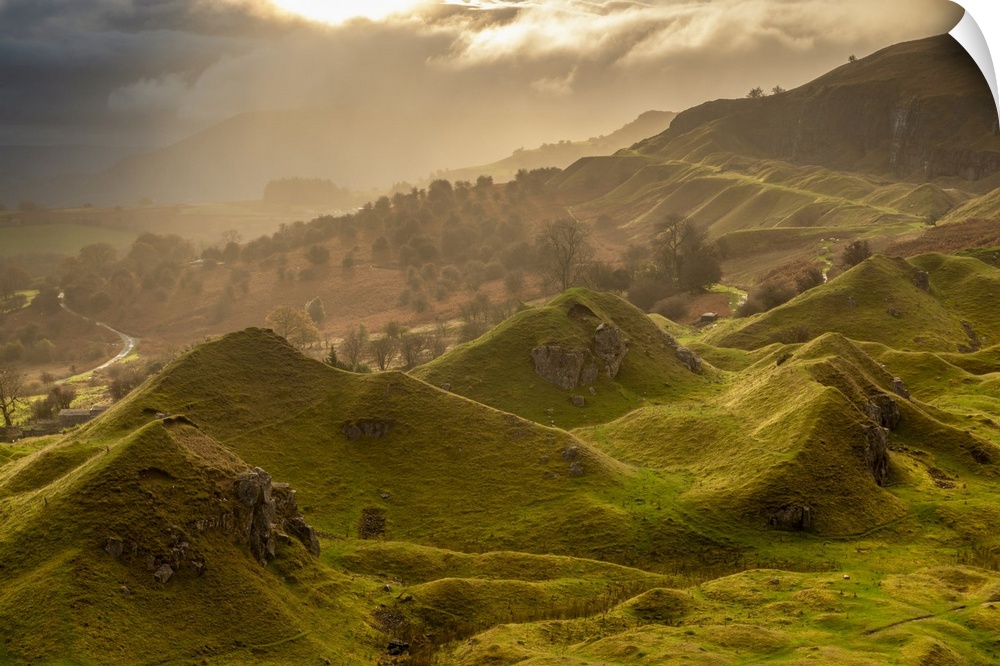 <p>Atmospheric sunrise above Llangattock Escarpment in the Brecon Beacons National Park, Powys, Wales. Autumn</p>