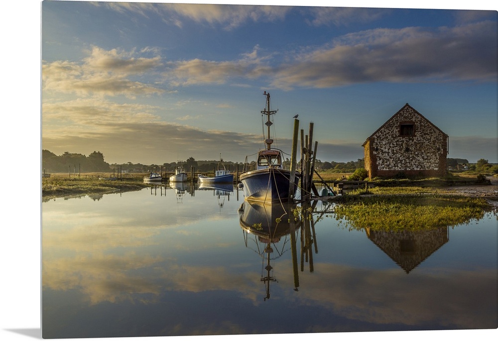 <p>Sunrise and high tide coincide at Thornham Creek.</p>