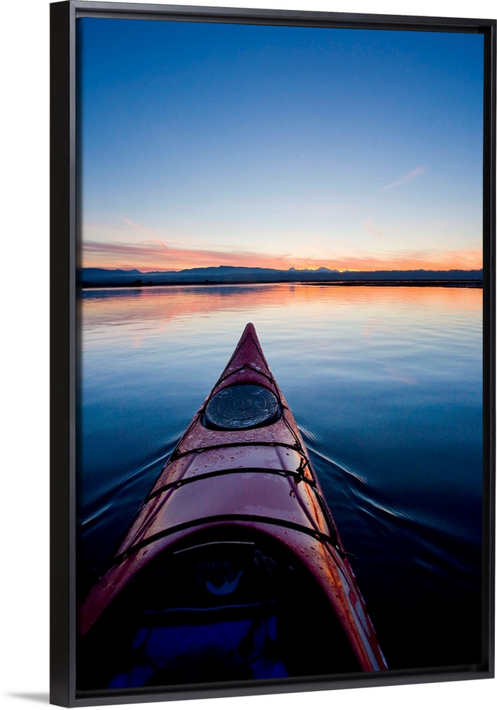 <p>USA, Skagit Bay, Washington. Sunrise and kayak floating at sunrise into Skagit Bay, WA.</p>