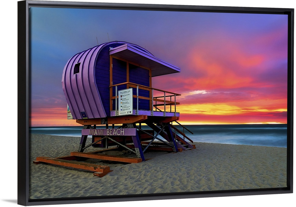 <p>BGarish colors paint the clouds above Miami Beach's retro 17th Street lifeguard station during a spectacular sunrise.</p>