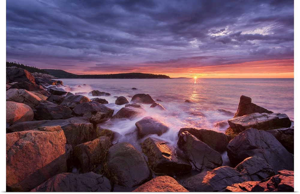 <p>Sunrise from rocky coast of Acadia National Park, Maine, USA.</p>