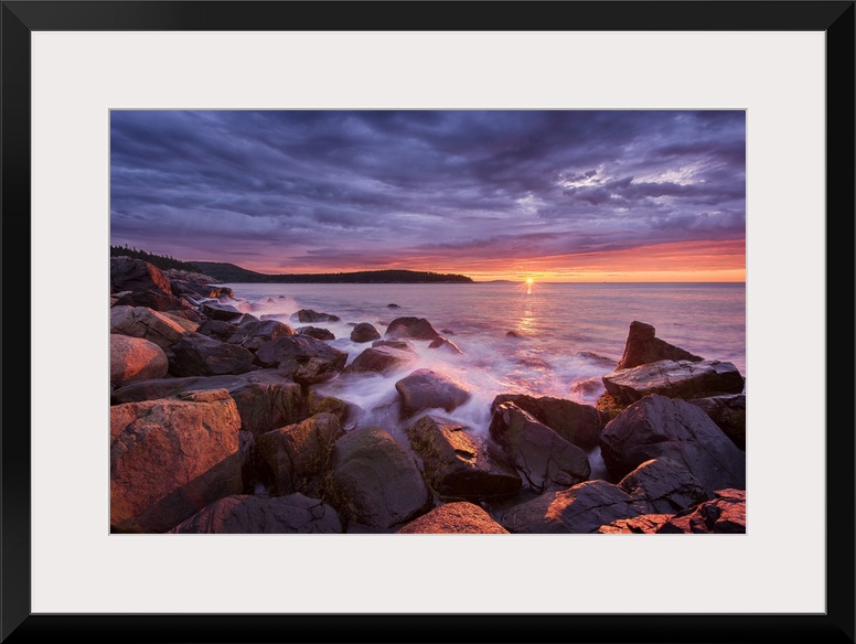 <p>Sunrise from rocky coast of Acadia National Park, Maine, USA.</p>