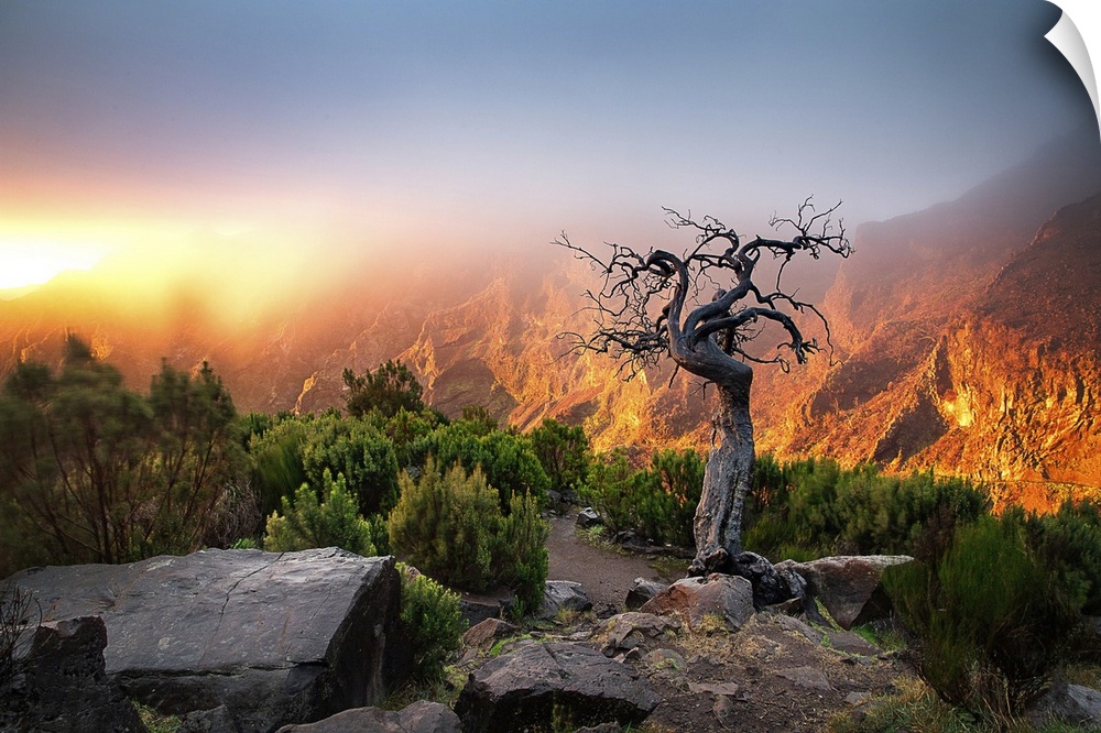 <p>Amazing sunrise in the mountains between Pico Do Arieiro and Pico Ruivo, Madeira, Portugal</p>