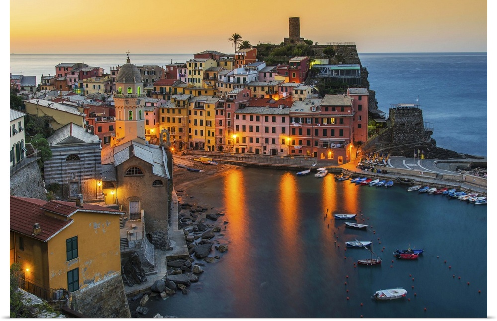 <p>Top view at sunrise of the picturesque sea village of Vernazza, Cinque Terre, Liguria, Italy</p>