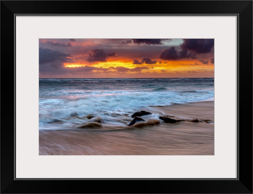 <p>Sunrise on the Hawaiian shore, Lydgate Beach; Kapaa, Kauai, Hawaii, United States of America.</p>
