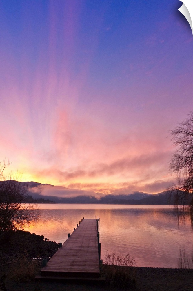 <p>Sunrise over a dock in Lake Whatcom during Winter, Bellingham Washington, USA</p>