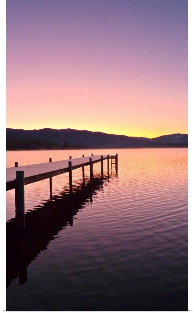 <p>Sunrise over a dock in Lake Whatcom during Winter, Bellingham Washington, USA</p>