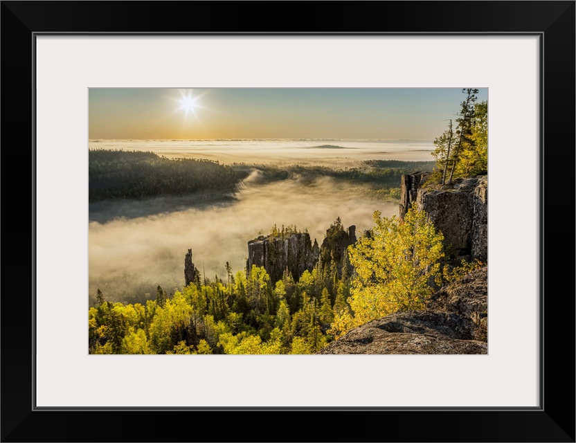 <p>Sunrise over a misty, foggy valley in the Canadian Shield; Dorian, Ontario, Canada.</p>