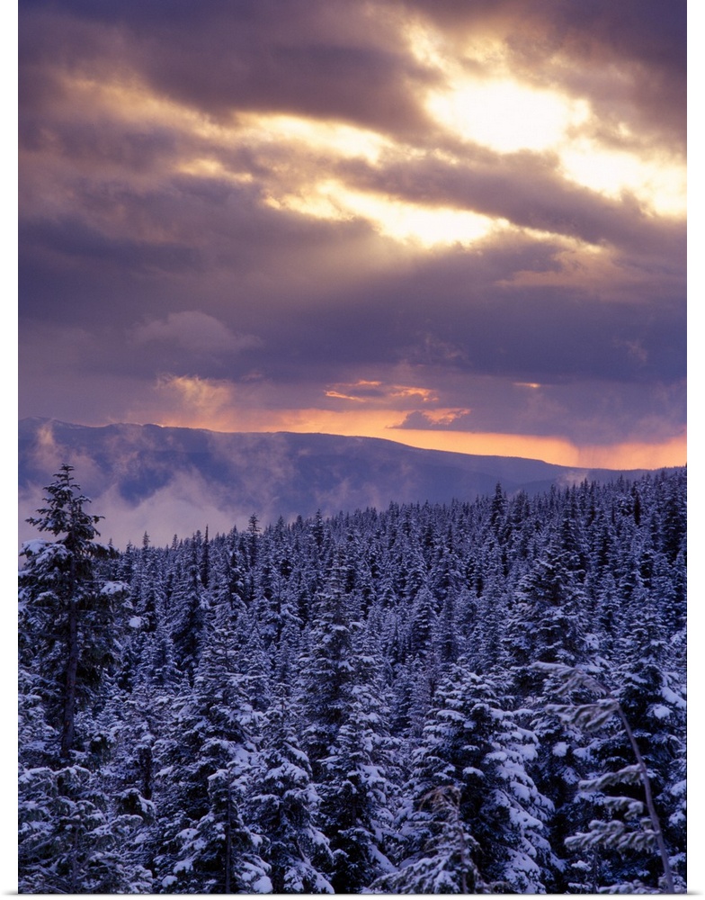 <p>Sunrise over a snow covered forest in the Mt Hood National Forest, Oregon Cascades.</p>