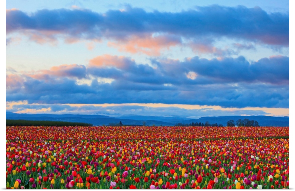 <p>Sunrise Over A Tulip Field At Wooden Shoe Tulip Farm, Woodburn, Oregon</p>
