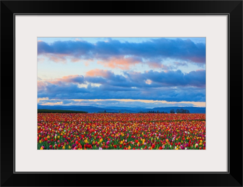<p>Sunrise Over A Tulip Field At Wooden Shoe Tulip Farm, Woodburn, Oregon</p>
