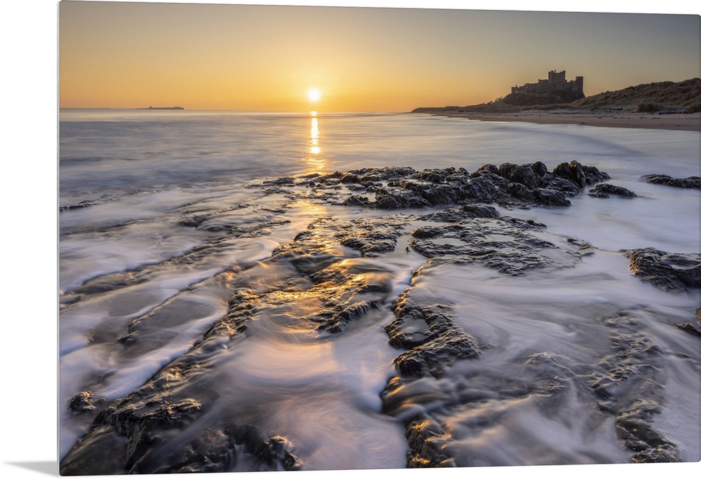 <p>Sunrise over Bamburgh Castle and beach, Northumberland, England. Winter (March) 2025.</p>