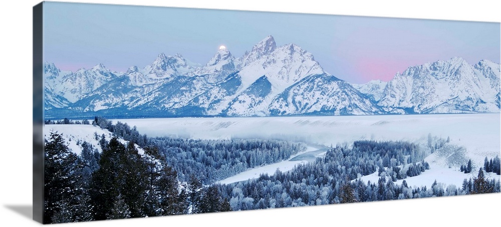 <p>Sunrise over Grand Tetons in winter, Grand Teton National Park, Wyoming, USA</p>