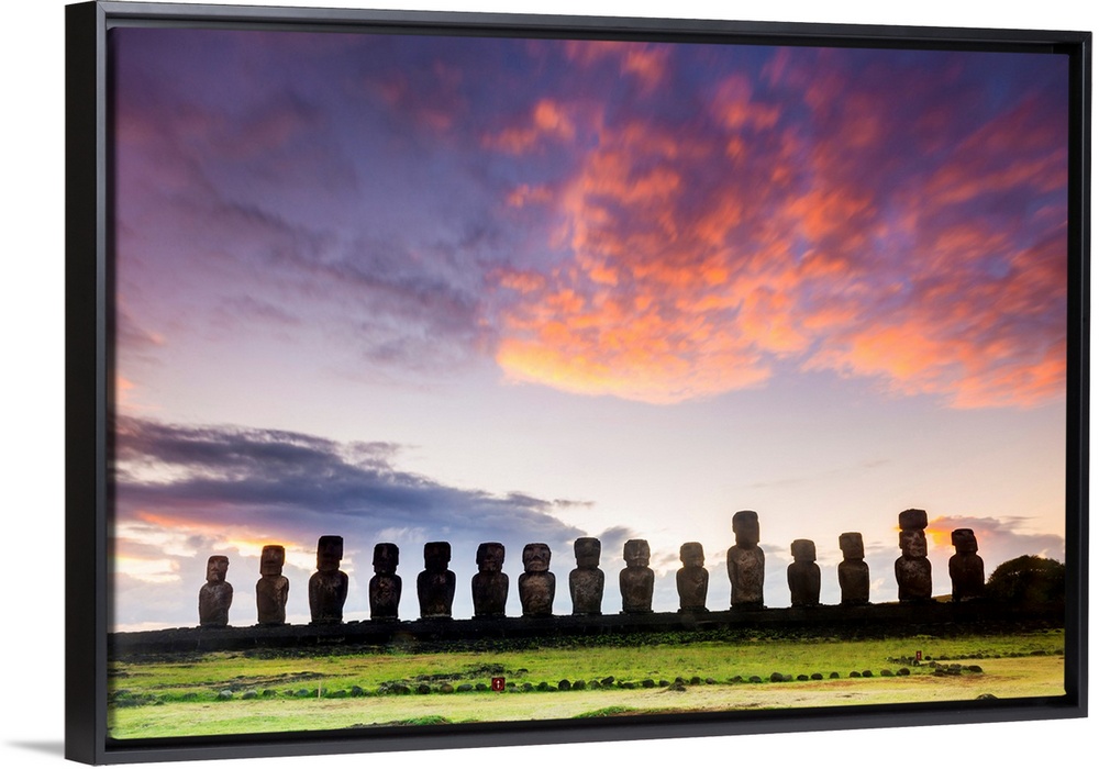 <p>Sunrise Over Moai At Tongariki, Easter Island, Polynesia, Chile</p>