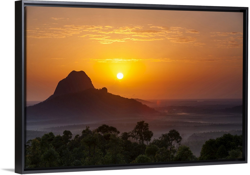 <p>Sunrise over Mount Tibrogargan. Glass House Mountains National Park, South East Queensland, Queensland, Australia</p>