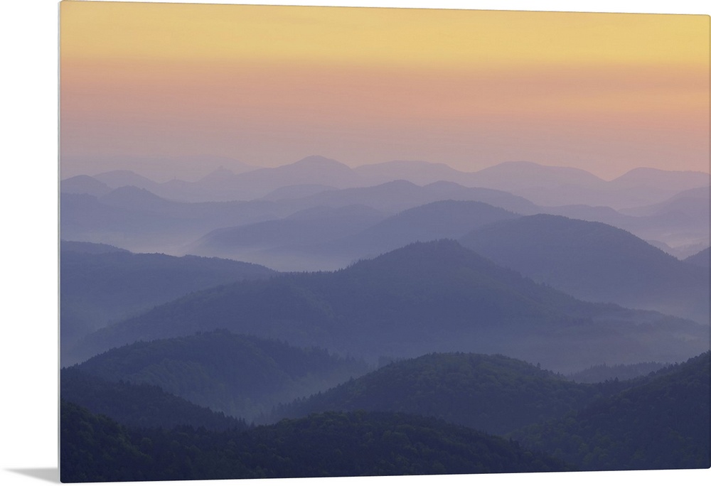 <p>Sunrise over Mountains, Nothweiler, Pfalzerwald, Rhineland-Palatinate, Germany</p>