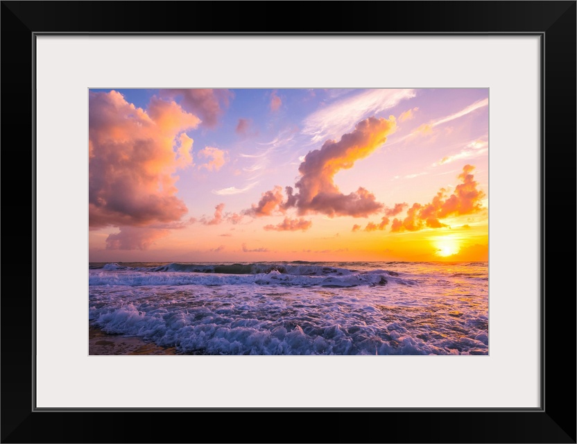<p>Sunrise over the Atlantic Ocean with the surf washing up on the shore; Indialantic, Florida, United States of America</p>