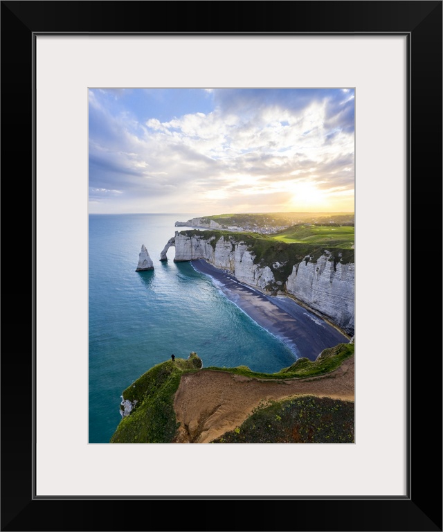 <p>Sunrise over the cliff of Etretat, Octeville sur Mer, Le Havre, Seine Maritime, Normandy, France, Western Europe.</p>