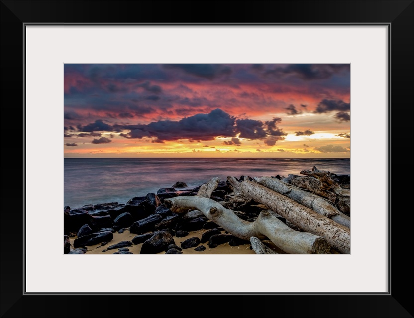 <p>Sunrise over the Pacific Ocean from the shore of Lydgate Beach; Kapaa, Kauai, Hawaii, United States of America</p>
