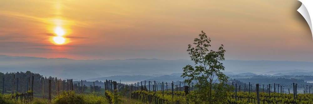 <p>Sunrise over the vineyards of Tuscany. Tuscany, Italy.</p>