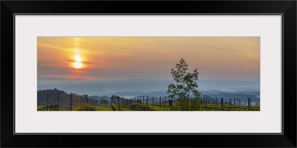 <p>Sunrise over the vineyards of Tuscany. Tuscany, Italy.</p>